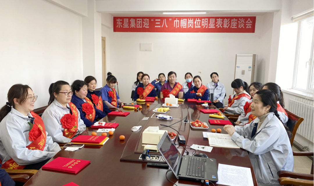3月7日下午,東星集團(tuán) “迎三八”巾幗崗位明星表彰座談會(huì)在機(jī)關(guān)三樓會(huì)議室召開(kāi),受到表彰的“巾幗崗位明星”和基層分會(huì)主席代表共計(jì)22人參加了會(huì)議。