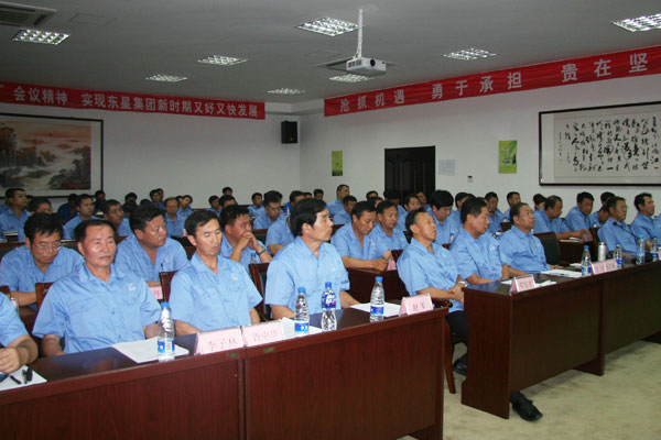 2013年8月21日、22日,東星集團在機關二樓會議廳召開干部大會。公司領導、全體中層干部、部分青年骨干代表共計100余人參加了會議。集團公司黨委書記、董事長、總經(jīng)理杜寶棟同志做了題為《振奮精神 面向未來 奮發(fā)努力 全面開創(chuàng)企業(yè)發(fā)展新局面》的主題報告。與會者緊緊圍繞杜總報告,結合所見、所想、所悟展開大討論,進一步統(tǒng)一思想,認清形勢和任務,居安思危,再圖發(fā)展。