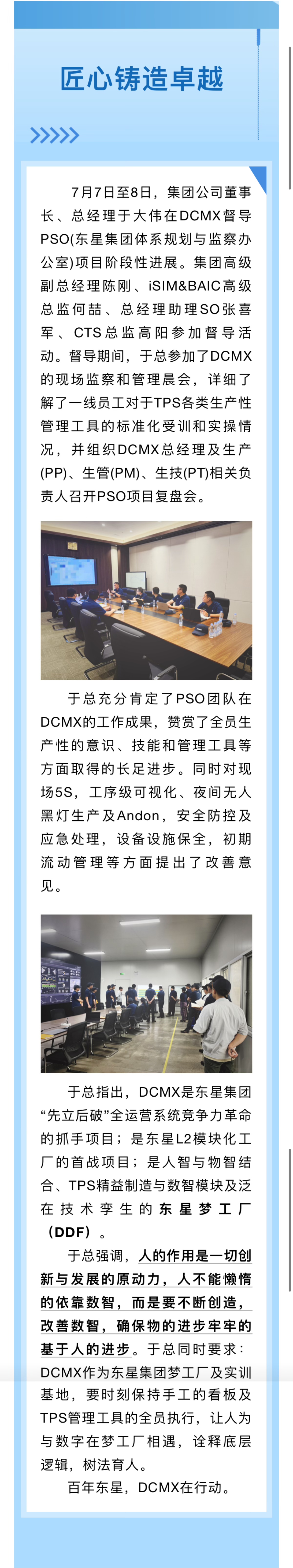 “匠心鑄造卓越,人智是創(chuàng)新與數(shù)智發(fā)展的源動力”東星集團(tuán)高層在DCMX督導(dǎo)PSO項(xiàng)目推進(jìn)工作