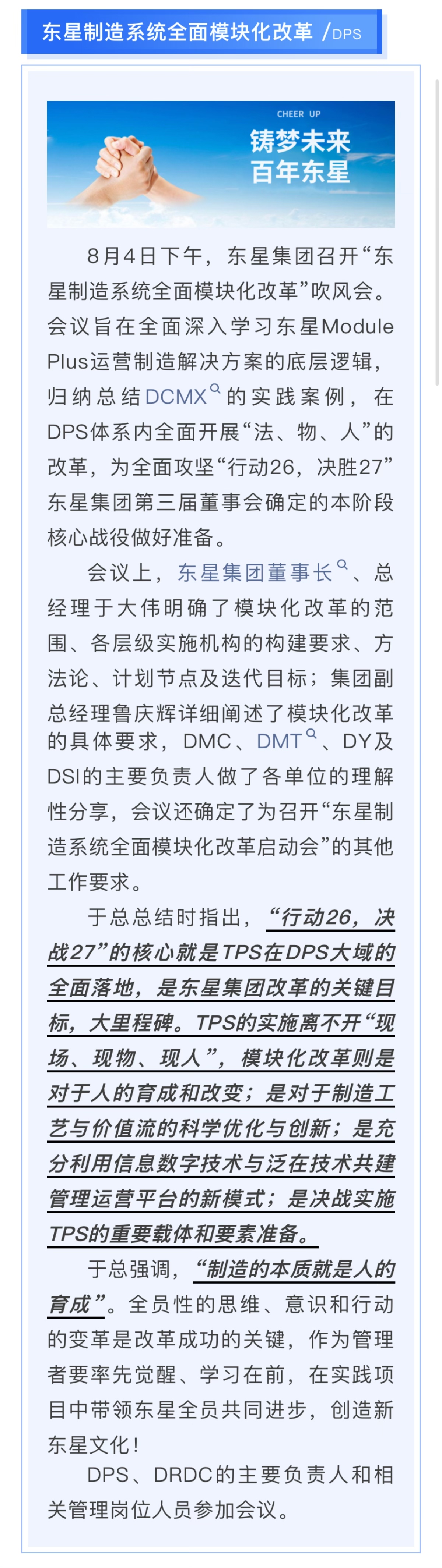 東星集團(tuán)DPS召開“東星制造系統(tǒng)全面模塊化改革”吹風(fēng)會(huì)